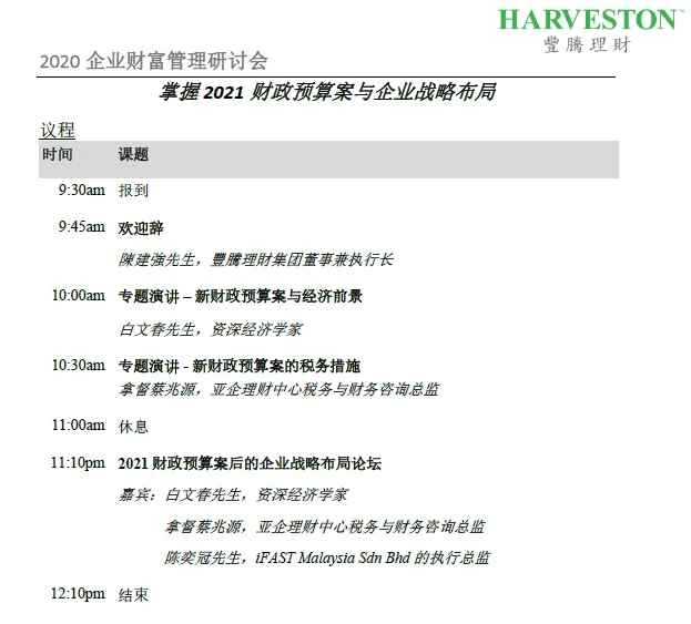 2020 豐騰理財企业财富管理研讨会 – 掌握2021财政预算案与企业战略布局
